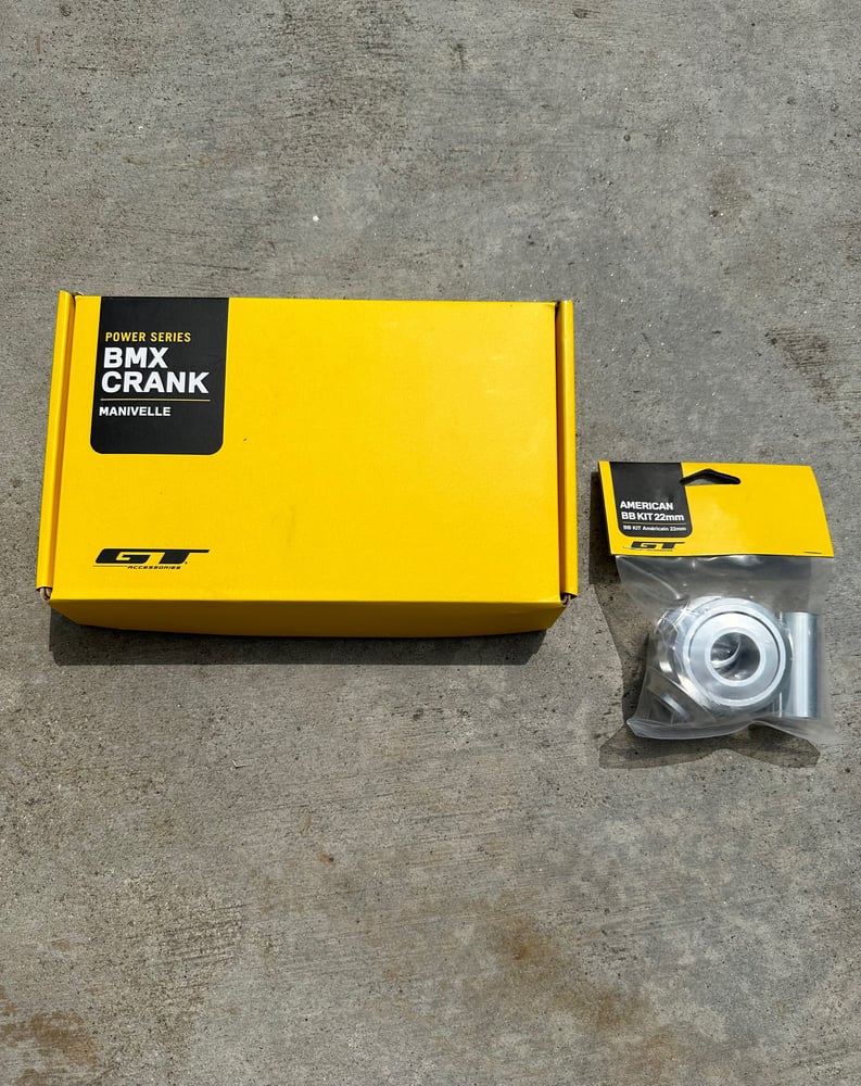 New GT BMX Power Series Cranks and GT BMX Sealed American Bottom Bracket. Brand new retro deadstock 175MM cranks with free shipping in the lower 48.